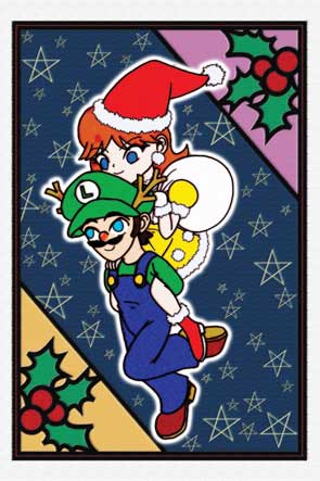 サンタデイジーとトナカイルイージ。 クリスマスデートな絵を描こう! と思って描き始めたものの、どこでどうなったのかこんなことに。とはいえ、そりを引っ張るのはあんまりなのでおんぶで。デイジーの服はちょっとだけ冬仕様です(ファーが付いてる辺り)。